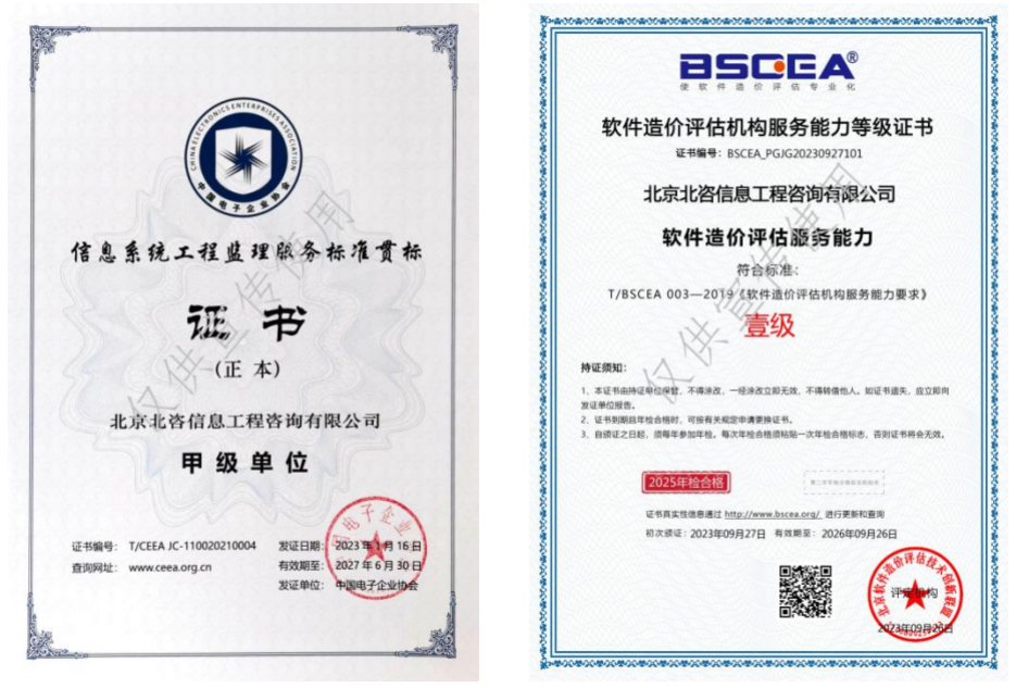 信息系统工程咨询和监理业务,包括:信息化规划/顶层设计、课题研究、重大项目谋划、项目建议书、可行性研究,初步设计、评估评审、项目代建及后评价、软件造价评估、信息化工程监理、项目管理、项目代建及后评价。