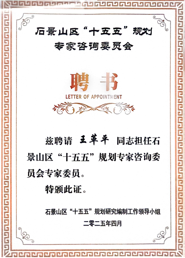 7月4日,石景山区召开“十五五”规划专家咨询委员会成立大会暨专家座谈会。区委书记常卫参加会议,北咨公司党委书记、董事长王革平受邀参会并受聘为委员会专家。