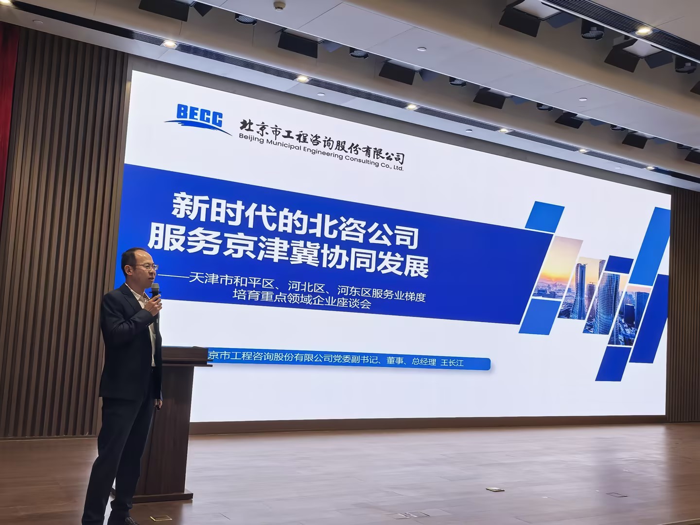 11月20日下午,由天津市发展改革委主办的天津市和平区、河北区、河东区服务业梯度培育重点领域企业座谈会在天津市模创社区举行。和平区、河北区、河东区发展改革委,天津市企业诚信协会相关负责同志及特邀企业代表等参加座谈,天津市发展改革委服务业消费处处长曾辉主持会议。公司党委副书记、董事、总经理王长江受邀参会。