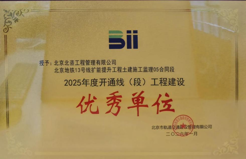 近日,北京市轨道交通建设管理有限公司召开会议,对2025年通车线(段)工程建设中的先进集体与个人予以表彰,北咨监理公司凭借在地铁18号线建设中的优异表现,荣获“优胜单位”奖,张鑫、刘金平获评“先进个人”称号。